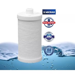 Produto : Refil de filtro de Água Marca: Filtros Mil; Cód. Do produto: 100980; Retenção de cloro; Retenção de partículas como: areia, terra, ferrugem, limo, lodo entre outros resíduos, tornando a água mais pura e cristalina; Material do refil: polipropileno e carvão granulado de 5 micras; Cor: Branco; Ponto de uso filtro de água filtros Mil 5; Micras 5 micras; Garantia: 3 meses; Vida útil: 6 meses a um 1 ano / Podendo saturar antes e ter a necessidade da troca antes do período estipulado devido a má qualidade da água; Quantidade na embalagem 1 refil.