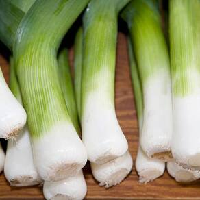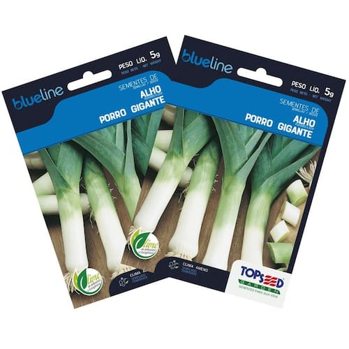 Descrição * Nome cientifico: Allium porrum. * Planta com folhas verdes azuladas, hastes brancas, longas e grossas de 21 x 4 cm. * Para obteçao de talo mais grosso, aumentar o espaçamento entre as plantas.