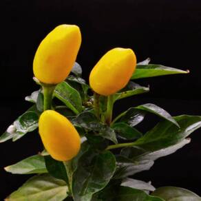 Descrição * Nome cientifico: Capsicum chinense. * Planta baixa, com folha vertical verde escura. * Frutos pequenos, medindo aproximadamente 3 x 1 cm.* Cor amarela quando maduros.