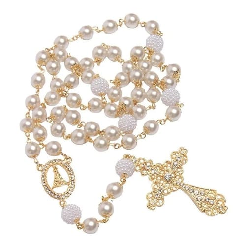 2X Terço De Noiva Banhado A Ouro Perolas Brancas Aparecida