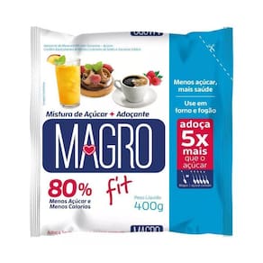 Transforme suas receitas sem culpa com o Açúcar Magro Fit 400g Este adoçante de mesa em pó é uma alternativa perfeita para quem busca reduzir a ingestão de açúcar sem sacrificar o sabor. Cada colher sopa de açúcar Magro equivale a 5 colheres sopa de açúcar comum, o que significa que você pode desfrutar do mesmo doce sabor enquanto reduz até 80% das calorias.
