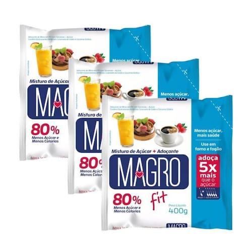 Transforme suas receitas sem culpa com o Açúcar Magro Fit 400g Este adoçante de mesa em pó é uma alternativa perfeita para quem busca reduzir a ingestão de açúcar sem sacrificar o sabor. Cada colher sopa de açúcar Magro equivale a 5 colheres sopa de açúcar comum, o que significa que você pode desfrutar do mesmo doce sabor enquanto reduz até 80% das calorias.