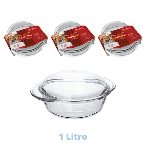 Itens inclusos: 3 Assadeiras Terrina 1 Litro sendo a Base com 700ml e Tampa com 300ml Marinex Nadir Figueiredo com as respectivas descrições acima.