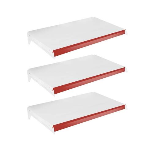 Kit 3 bandejas prateleiras 40x73 ponta para gôndolas new plus com porta etiquetas vermelho - sa gôndolas