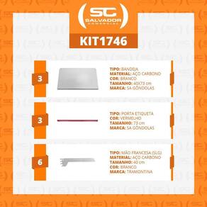 - 3 bandeja prateleira new plus 40x73 com reforço para gôndolas de ponta - sa gôndolas - 3 porta etiqueta em acrílico vermelho - sa gôndolas - 6 mão francesa apoio para bandeja 40cm slg gôndolas new plus - sa gôndolas