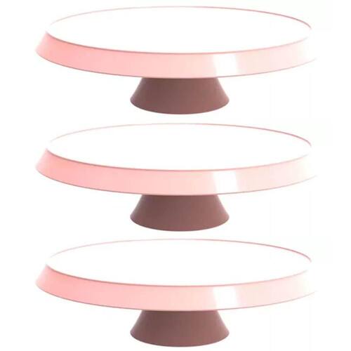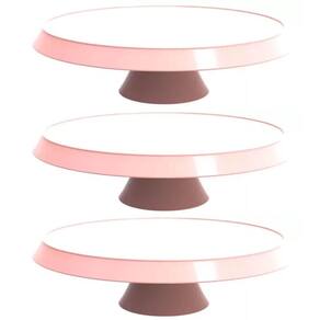 3 Bases Porta Bolos Tortas Doces 34cm com Pé Bubble Crippa Suporte Rosa Himalaia.
