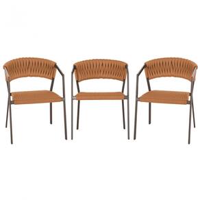 3 Cadeiras Atenas Tricô Náutico e Alumínio com Proteção UV para Varanda, Cozinha, Área, Jardim - Pintura Marrom - Laranja
