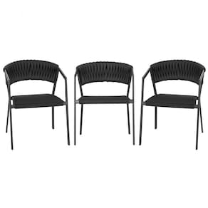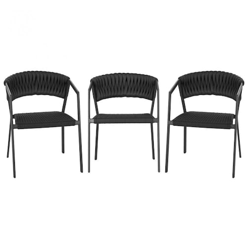 3 Cadeiras Atenas Tricô Náutico e Alumínio com Proteção UV para Varanda, Cozinha, Área, Jardim - Pintura Preto - Preto