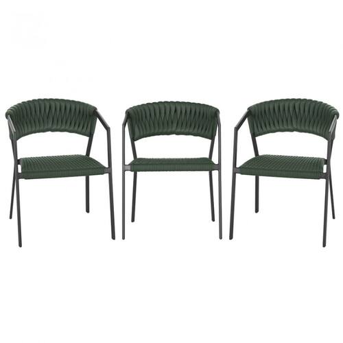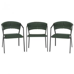 3 Cadeiras Atenas Tricô Náutico e Alumínio com Proteção UV para Varanda, Cozinha, Área, Jardim - Pintura Preto - Verde