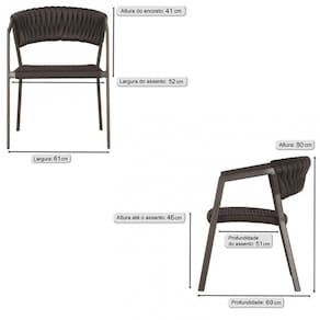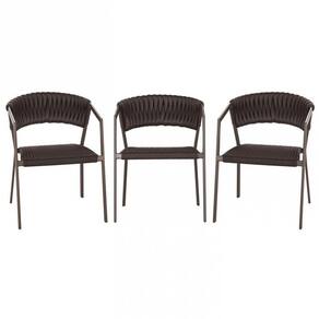 3 Cadeiras Atenas Tricô Náutico e Alumínio Edícula e Cozinha Trama - Marrom Chocolate
