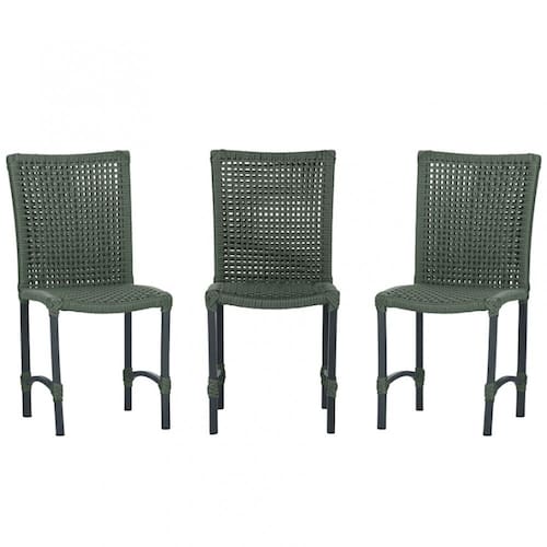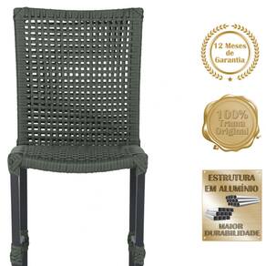 3 Cadeiras Corda Náutica Cannes em Alumínio com Pintura Eletrostática para Cozinha Jantar Edícula - Verde