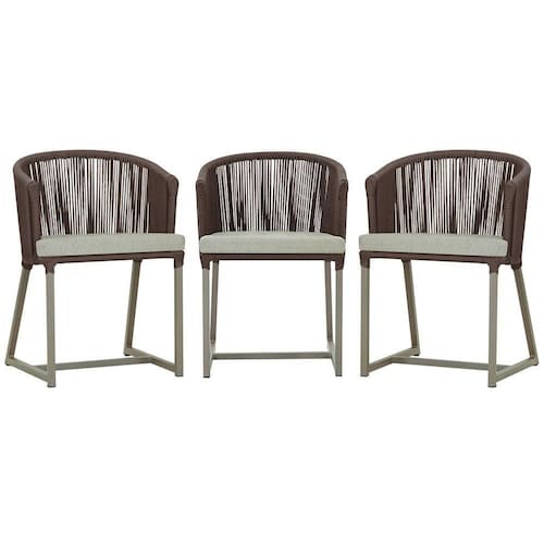 3 Cadeiras De Jantar Noronha Fendi Corda Náutica E3 Trama Marrom
