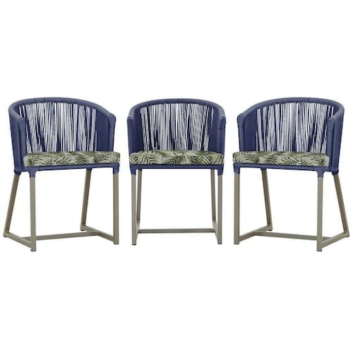 3 Cadeiras De Jantar Noronha Fendi Corda Náutica E5 Trama Azul