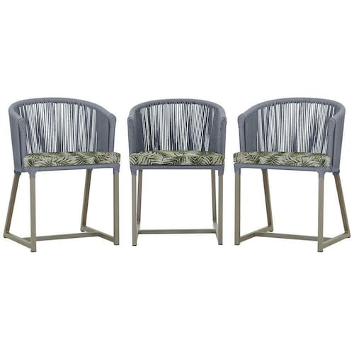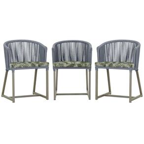 3 Cadeiras De Jantar Noronha Fendi Corda Náutica E5 Trama Prata