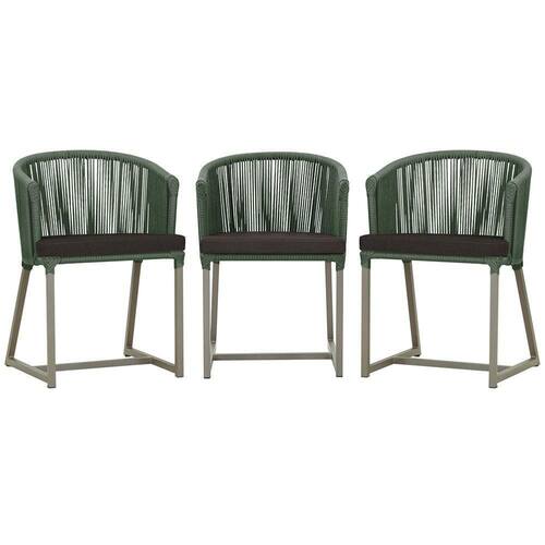 3 Cadeiras De Jantar Noronha Fendi Corda Náutica E9 Trama Verde