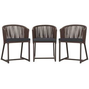 3 Cadeiras De Jantar Noronha Marrom Corda Náutica E11 Trama Marrom