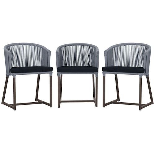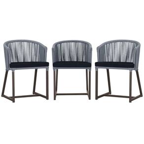3 Cadeiras De Jantar Noronha Marrom Corda Náutica E12 Trama Prata