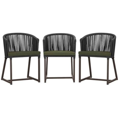 3 Cadeiras De Jantar Noronha Marrom Corda Náutica E13 Trama Preto