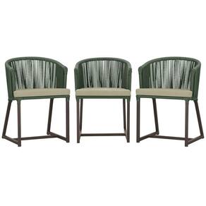 3 Cadeiras De Jantar Noronha Marrom Corda Náutica E7 Trama Verde