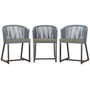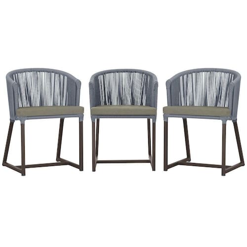 3 Cadeiras De Jantar Noronha Marrom Corda Náutica E8 Trama Prata