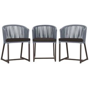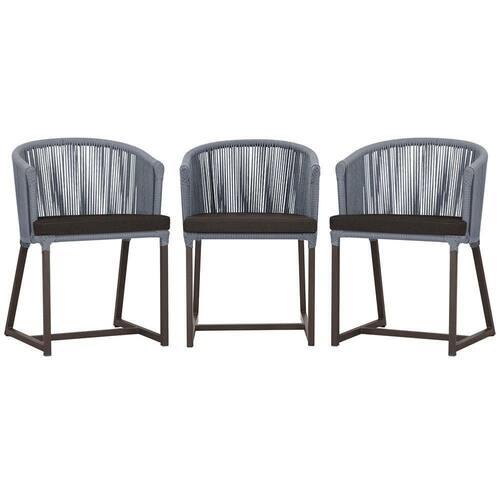 3 Cadeiras De Jantar Noronha Marrom Corda Náutica E9 Trama Prata