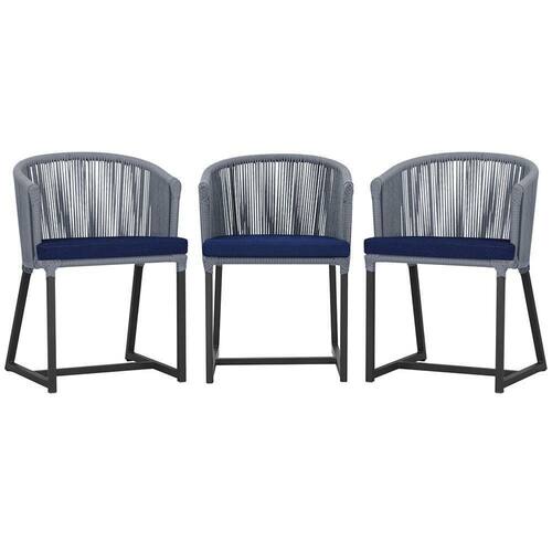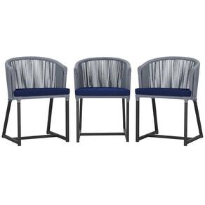 3 Cadeiras De Jantar Noronha Preta Corda Náutica E10 Trama Prata
