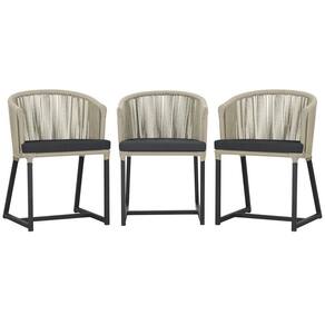 3 Cadeiras De Jantar Noronha Preta Corda Náutica E11 Trama Rami
