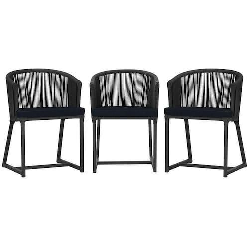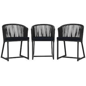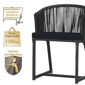 3 Cadeiras De Jantar Noronha Preta Corda Náutica E12 Trama Preto