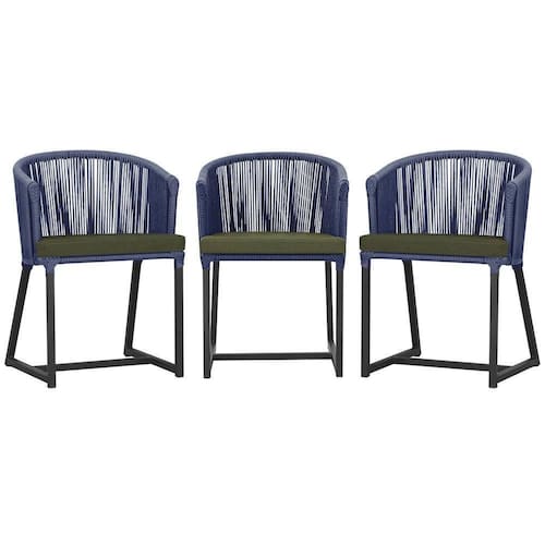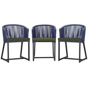 3 Cadeiras De Jantar Noronha Preta Corda Náutica E13 Trama Azul