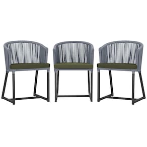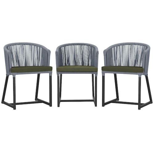 3 Cadeiras De Jantar Noronha Preta Corda Náutica E13 Trama Prata