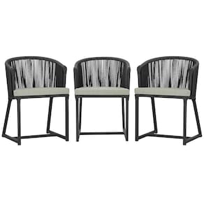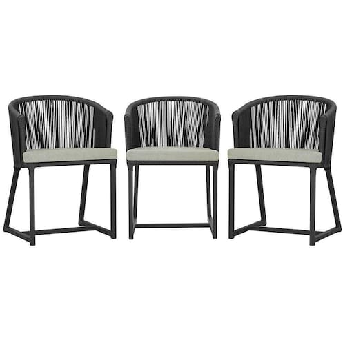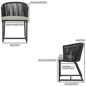 3 Cadeiras De Jantar Noronha Preta Corda Náutica E3 Trama Preto