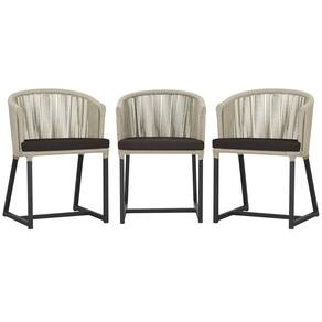 3 Cadeiras De Jantar Noronha Preta Corda Náutica E9 Trama Rami