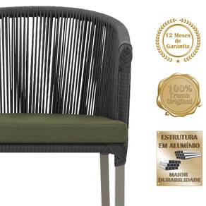 Descubra a Elegância e Durabilidade da Cadeira Noronha. Combinando estilo e resistência, esta cadeira traz o melhor do design contemporâneo em alumínio com micro pintura e acabamento em corda náutica. O estofado impermeável completa o conforto e a funcionalidade, tornando-a ideal para ambientes externos e internos. Qualidade e elegância que transformam qualquer espaço. Adicione um toque de sofisticação e conforto ao seu espaço com a cadeira Noronha.