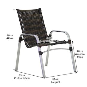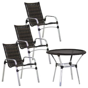 3 Cadeiras Emily e Mesa Emily Tampo Tramado em Alumínio Trama - Marrom Chocolate