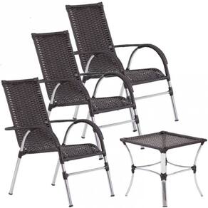3 Cadeiras Vênus e Mesa Garden Área Externa Trama - Marrom Escuro