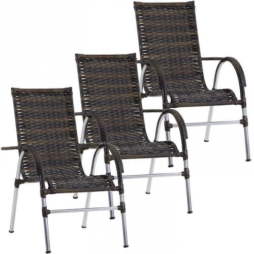 3 Cadeiras Vênus Em Alumínio Fibra Sintética Varanda Trama Pedra Ferro