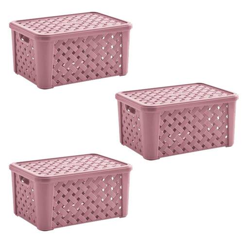 KIT 3 CAIXAS ORGANIZADORA RATTAN 24x17x12 ROSE PARAMOUNT