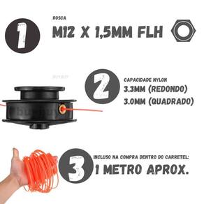 3 Carretel Fio De Nylon Roçadeira Para Stihl Husqvarna M12