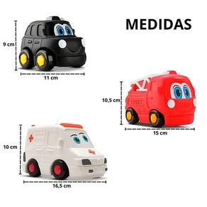• Dimensões aproximadas: Ambulância : 16 CM / Policia: 11 CM / Bombeiro: 15 CM