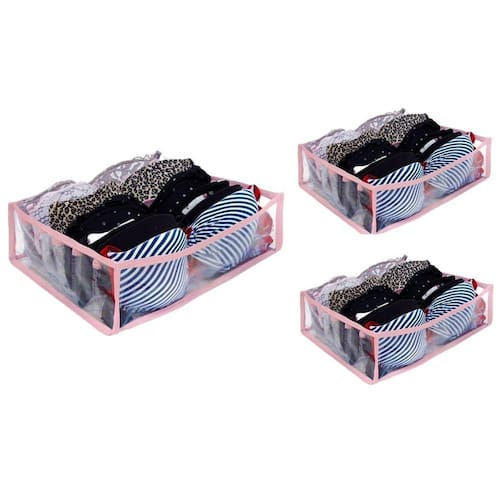 3 três Colmeia Organizadora De Sutiã Multiuso 6 seis Divisórias 32x10x22 Transparente Com Viés Rosa Com praticidade e organização, tamanho certo, arrume seu guarda-roupa com colmeia de 6 divisórias e ganhe mais tempo para você Organizador em Colmeia Cristal 6 seis nichos permite melhor visualização e organização de suas roupas e peças íntimas, facilitando o seu dia a dia. Possui boa sustentação para acomodar as roupas, costuras reforçadas o que garante maior durabilidade. É confeccionado em plástico PVC, material resistente e transparente. Ideal para sutiã com bojo, chinelos, rasteirinhas, camisetas, blusinhas, roupa de academia, toalhinhas, roupinhas de bebê, meias, calcinhas, dentre outros. Com nossa colmeia organizadora, suas roupas estarão sempre no lugar certo e fáceis de encontrar. Organizador de sutiã cristal com rosa Tamanho: 32x21x10 6 divisórias Marca: VB Home Material resistente: PVC cristal transparente de alta qualidade Limpeza: Limpar tudo com pano úmido. Não utilizar produtos químico. Excelente também para ser em organização de espaço por Personal Organizer. Temos organizadores de vários tamanhos, na dúvida consulte-nos. Podemos montar anúncios específicos para você. Estamos à sua disposição Marca: Não Informado Ean: 7908788501074