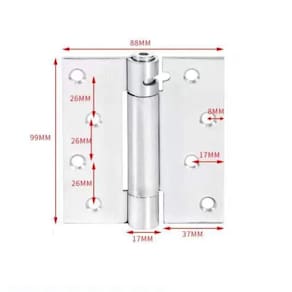 Dobradiça com mola inox 4 x 3.5 x 2,5mm Dobradiça com mola para fechamento automático suave das portas. Utilizada no lugar das molas aéreas funciona perfeitamente em portas pesadas e leves. Com uma mola interna de fácil regulagem da força de fechamento é super fácil de instalar, discreta mantendo a estética da porta e economiza espaço que uma mola aérea convencional ocupa. Características: - dobradiça de inox com mola integrada - capacidade de carga até 50kg/cada 2 peças - fchamento automático com regulagem da mola - espessura de 2,5mm - altura da dobradiça: 99mm - largura: 88mm - espessura mínima da porta: 35mm Dica Em portas de 2,10 de altura, mesmo pesando menor do que 50 kg o ideal é ser colocado 3 dobradiças para um bom funcionamento da mola Instruções para instalação e regulagem 1 encaixe a chave allen na cavidade sextavada 2 retire o pino de ajuste girando e pressionando a chave contra a dobradiça 3 fixe a dobradiça de maneira convencional, depois de retirar o pino de ajuste 4 com a porta fechada, encaixe novamente a chave allen na cavidade sextavada 5 gire-a em sentido anti-horário, pressionando-a contra a dobradiça 6 recoloque o pino de ajuste no orifício mais à esquerda 7 cada orifício corresponde a uma pressão para fechar a porta. Quanto mais girar a chave a direita e colocar o pino a esquerda, maior será a pressão. ajuste da maneira necessária a sua necessidade