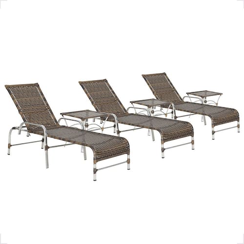 3 Espreguiçadeira Catar e 3 Mesa Garden Alumínio e Fibra Trama Moveis - Palha