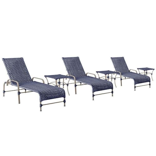 3 Espreguiçadeiras Catar 3 Mesas Garden Corda Náutica Trama Azul