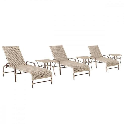 3 Espreguiçadeiras Catar 3 Mesas Garden Corda Náutica Trama Rami