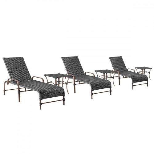 3 Espreguiçadeiras Catar 3 Mesas Garden Corda Náutica Trama Preto