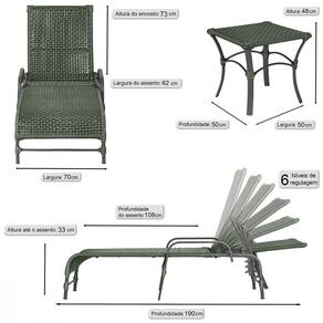 3 Espreguiçadeiras Catar e 3 Mesas Trama - Verde Musgo