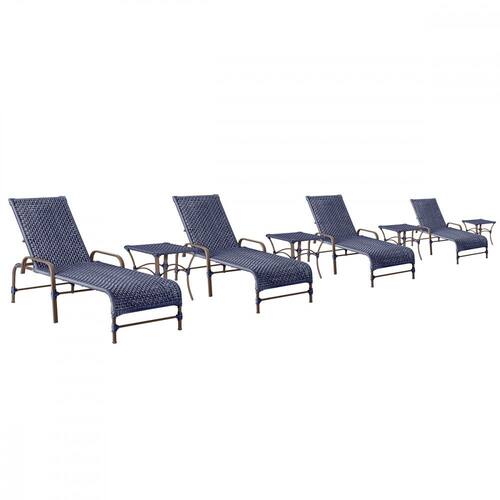 3 Espreguiçadeiras Catar e 3 Mesas Trama - Azul