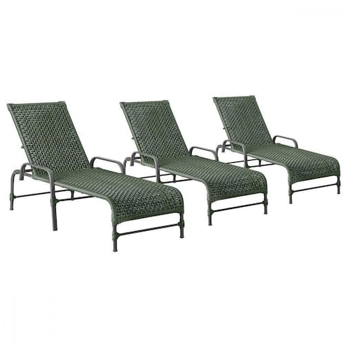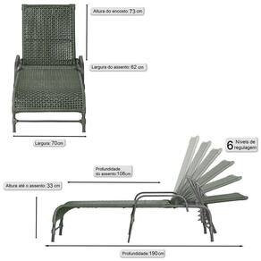 3 Espreguiçadeiras Reclinavel Catar Preto Corda Nautica Verde