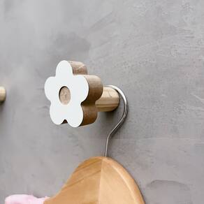 A face vai colada com super cola e acaba sendo apenas decorativa, pois é o suporte quem recebe o esforço, suportando até 5 Kg. Anúncio referênte à 3 unidades. Modelo: Flor Tamanho da face: 5,0cm X 5,0cm; Material: MDF laminado 15mm melamínico | borda cru Cor: Rosa, Azul, Branco e Cinza