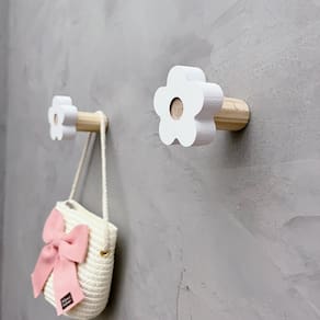 A face vai colada com super cola e acaba sendo apenas decorativa, pois é o suporte quem recebe o esforço, suportando até 5 Kg. Anúncio referênte à 3 unidades. Modelo: Flor Tamanho da face: 5,0cm X 5,0cm; Material: MDF laminado 15mm melamínico | borda pintada Cor: Rosa, Azul, Branco e Cinza